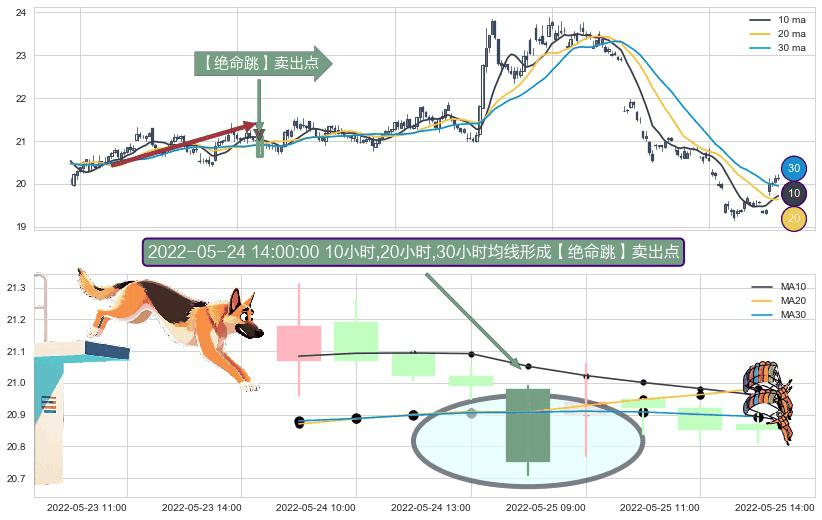 形态多维评估: ⚀ 2022-05-24 14:00:00小时显现 10小时-20小时-30小时均线 【绝命跳】卖出点 看空信号,后市看跌,卖出