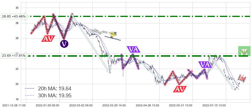 ♞ 20小时均线:19.64,30小时均线:19.95→ 快线<慢线