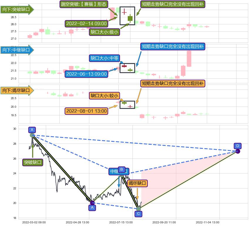 ➢ 2022-08-01 13:00形成:向下跳空【竭尽】缺口
