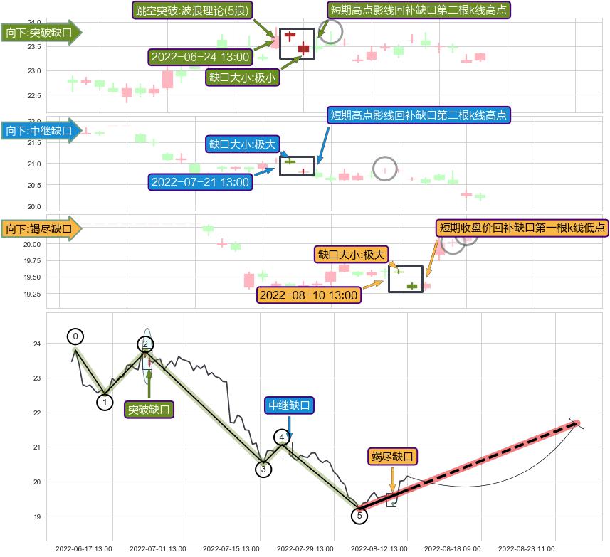 ➢ 2022-08-10 13:00形成:向下跳空【竭尽】缺口