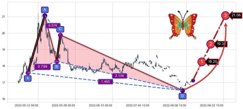 ➣ 已完成【蝴蝶】形态起点X: 05-06:11, 终点D: 08-03:14, 共210交易小时