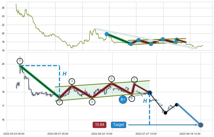 ➣ 最小中继整理跌幅→𝐇: 2.300 (𝐇旗杆的长度:旗杆起点→顶点)