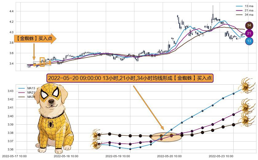形态多维评估: ⚀ 2022-05-20 09:00:00小时显现 13小时-21小时-34小时均线 【金蜘蛛】买入点 看多信号,后市看涨,买入