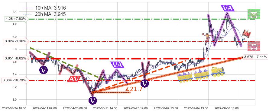 ♘ 阻力价格位4.28,可信任强度59.99%,距离最后交易2022-08-12 14:00形成的收盘价格3.970相差 +7.83%