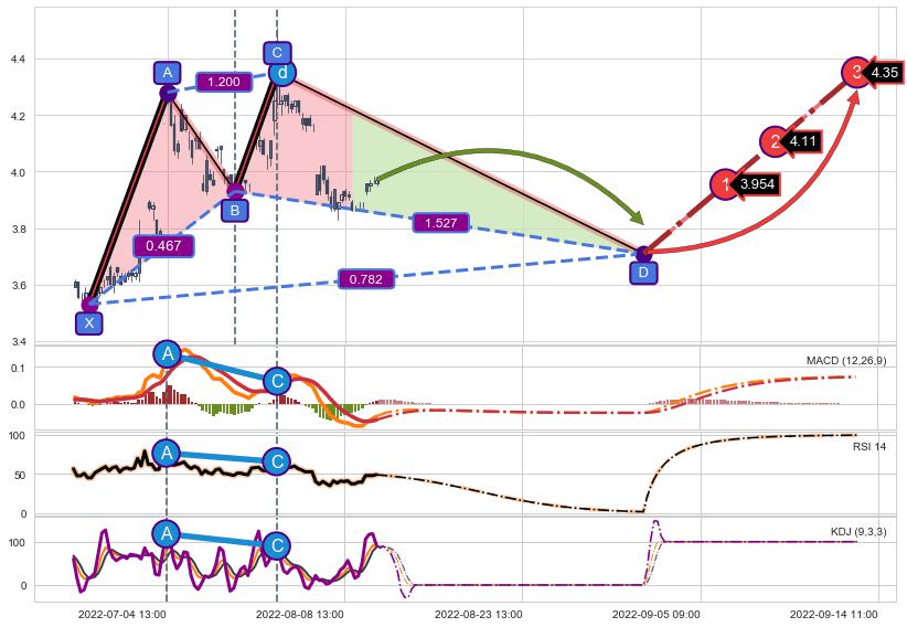➢ 谐波价格A点比C点低 ⤵,【KDJ】指标A点比C点高 ⤴️