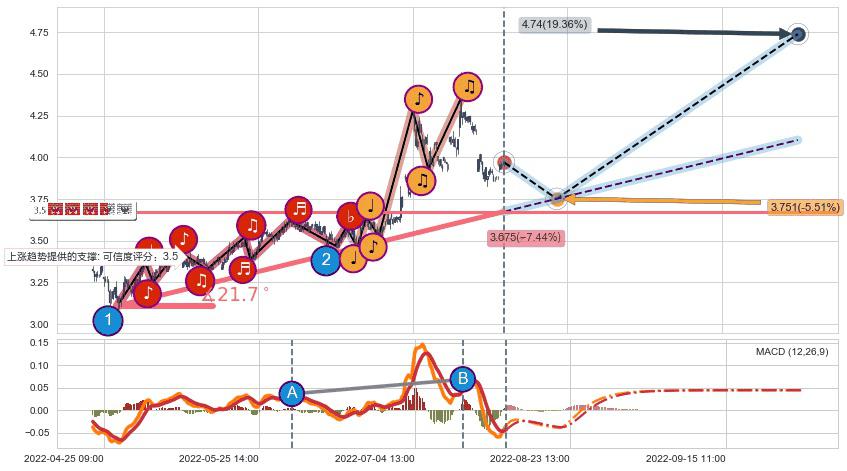 ➢ 预测:2022-08-22 12:00,【小幅回撤】稳定目前上涨趋势的前提下,预测价格:3.751