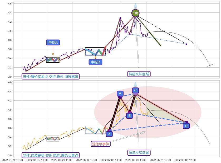 ➢ 智能识别已发生事件:缠论第一类卖点【卖❶】→(07-25:14: 4.35 )