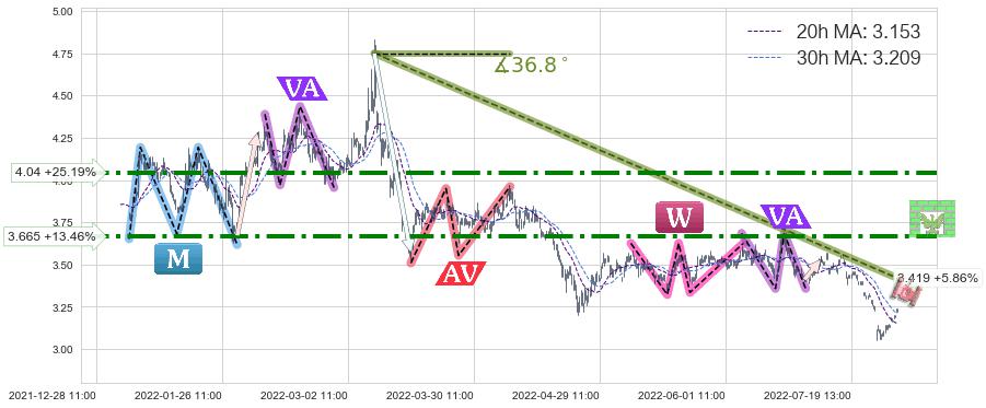 ➣ D点拟合预测价格3.903,距离最后交易收盘价格3.230相差 +20.83%