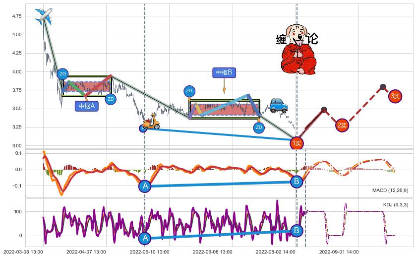 ➢ 智能识别已发生事件:缠论第一类买点【买❶】→(08-03:14: 3.070 )