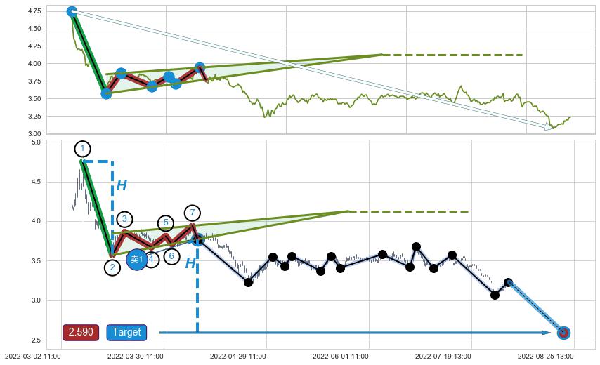 ➣ AI预测: 假定反转启动后, 第❶目标位置(10-21:09, 3.585)