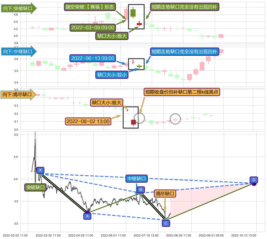 ➢ 2022-08-02 13:00形成:向下跳空【竭尽】缺口
