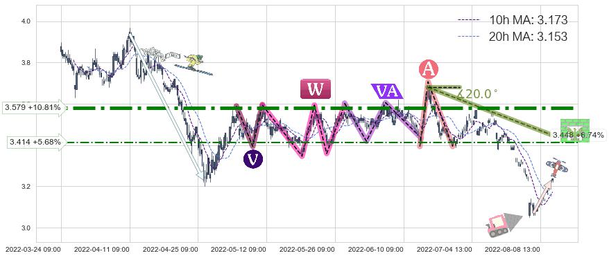 ➣ AI预测: 假定反转如期而至,第❷价格目标位置(08-19:13, 3.447)