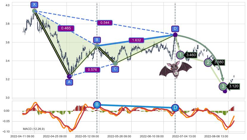 ➣ 已达成看跌【蝙蝠】形态全部的预期目标