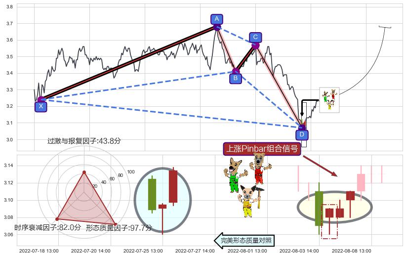 | 3 🅚:上涨Pinbar组合信号 ➕ 📡:谐波蝙蝠猜想第❸目标位置到达后支撑临近(均值回复) ☞ 看多信号 ⇥ 【🅚线】交织【图形】⇥ 综合量化分数: 54 | > |