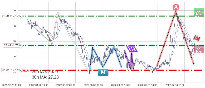 ♘ 支撑价格位27.44,可信任强度71.55%,距离最后交易2022-08-12 14:00形成的收盘价格27.91相差 -1.70%