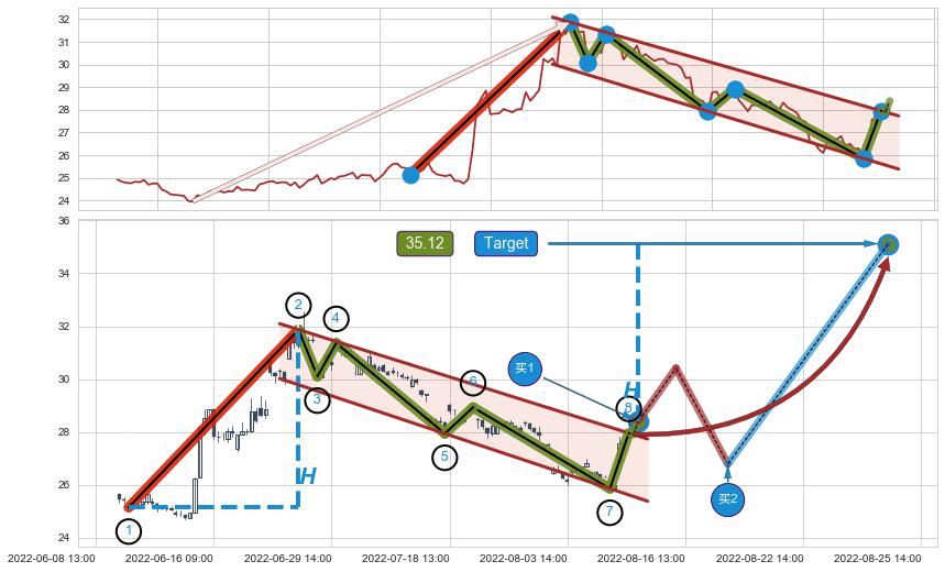 ➣ 最小中继整理涨幅→𝐇: 6.72 (𝐇旗杆的长度:旗杆起点→顶点)