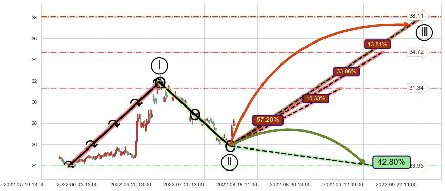 ➣ 循环浪继续向上【平均值】位置(09-15:09, 34.72),匹配聚类样本比例57.78%, 可能性概率33.06%