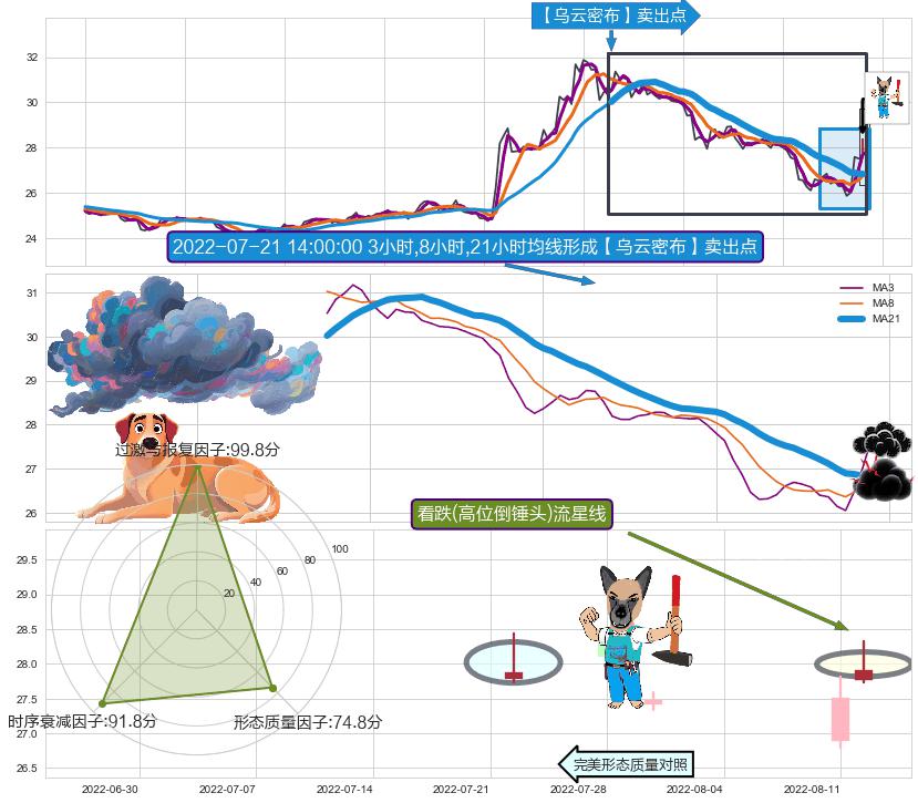 | 3 🅚:【乌云密布】卖出点 ➕ 🌊:波浪理论上涨5浪延续回调:猜想回调C点击穿破位,猜想持续蓄力回调abc下跌方向(大周期趋势均值回复后小周期持续趋势跟踪) ☞ 看空信号 ⇥ 【均线】交织【图形】⇥ 综合量化分数: 30 | > |
