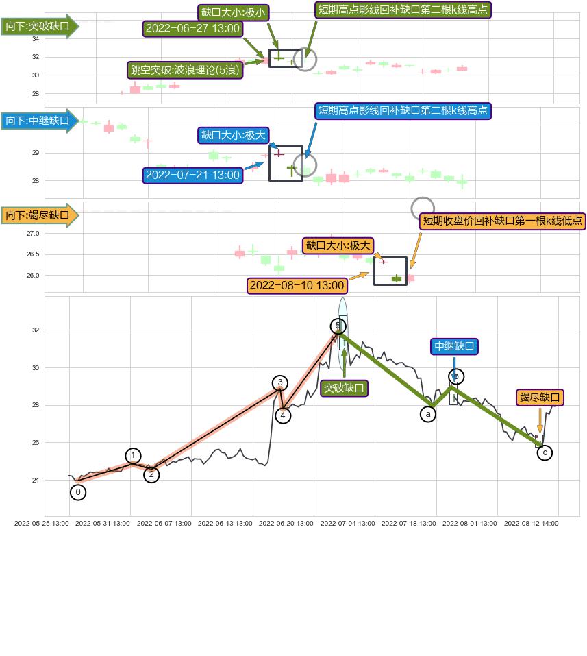 ➢ 2022-08-10 13:00形成:向下跳空【竭尽】缺口