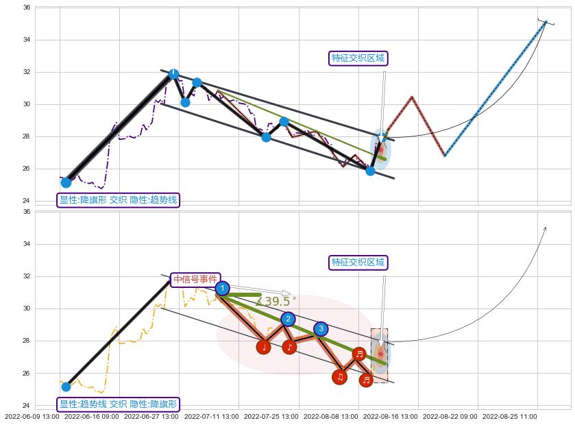 从2022-07-20 14:00至2022-08-12 14:00,共包含35个小时,阶段股价下跌-3.23%,阶段股价变动位移路程比: 1 : 10