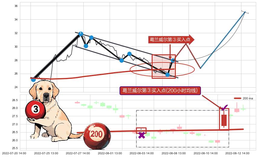 ➢ 收盘价(08-12:13: 27.96 )→再次回踩→第一根k线低点(08-09:14: 26.28 )