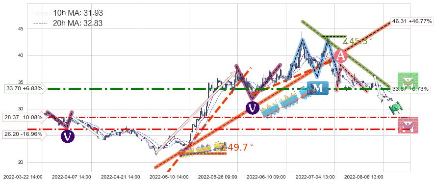 ♘ 阻力价格位33.70,可信任强度80.38%,距离最后交易2022-08-12 14:00形成的收盘价格31.55相差 +6.83%