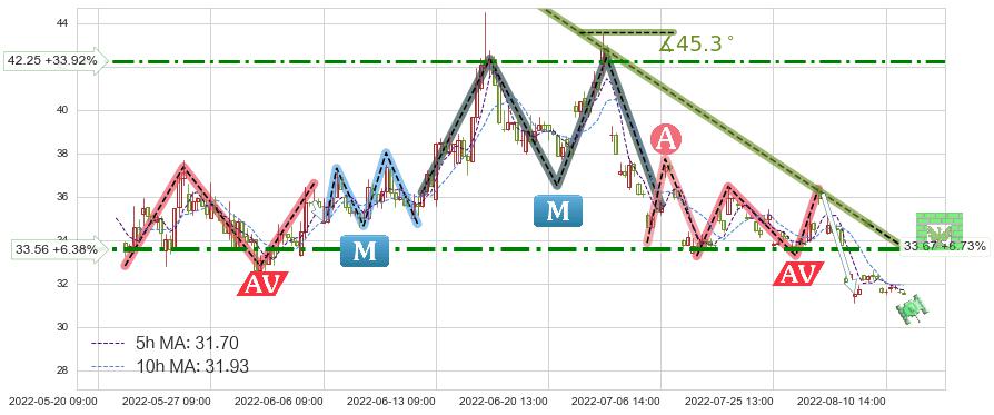 ♘ 阻力价格位33.56,可信任强度79.17%,距离最后交易2022-08-12 14:00形成的收盘价格31.55相差 +6.38%