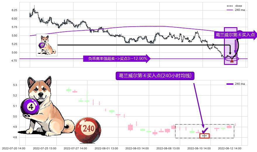⚀ 2022-08-10 13:00:00-小时显现 葛兰威尔均线 240小时均线 第④买入点 下降趋势均值回复的短线反弹信号,后市看涨,买进信号
