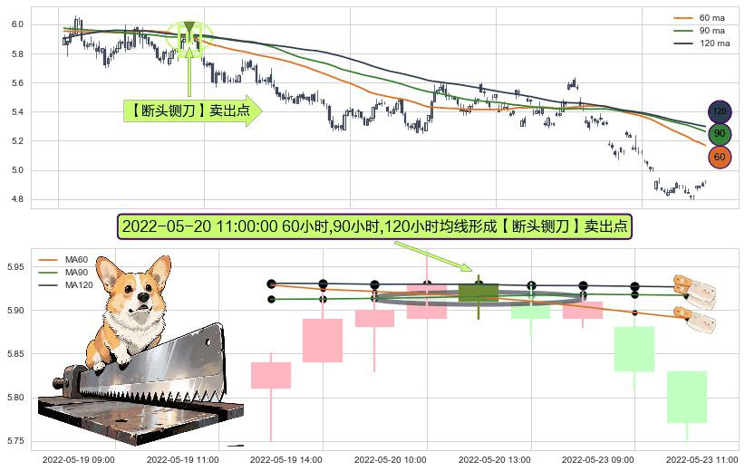 ⚀ 2022-05-20 11:00:00小时显现 60小时-90小时-120小时均线 【断头铡刀】卖出点 看空信号,后市看跌,卖出