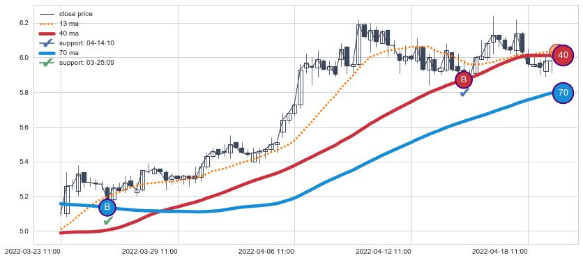 ⚀ 2022-06-29 14:00:00小时-2022-08-12 14:00:00小时显现 30小时-60小时-90小时均线 【高山滑雪】买入点 看多信号,后市看涨,买入
