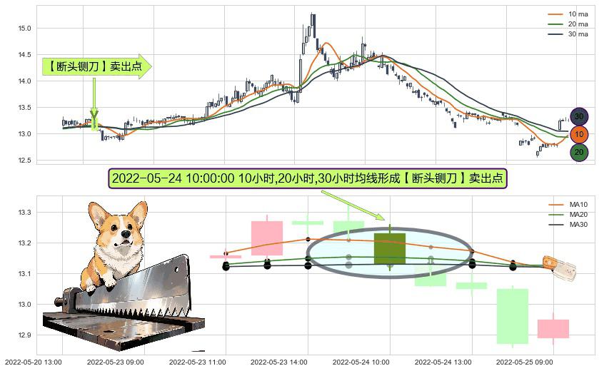 形态多维评估: ⚀ 2022-05-24 10:00:00小时显现 10小时-20小时-30小时均线 【断头铡刀】卖出点 看空信号,后市看跌,卖出