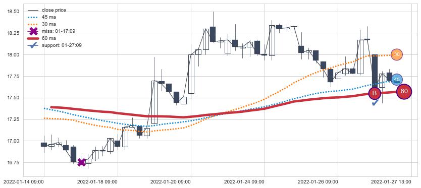 上涨趋势01-14 09:00-01-27 13:00,均线60确认关键支撑1处