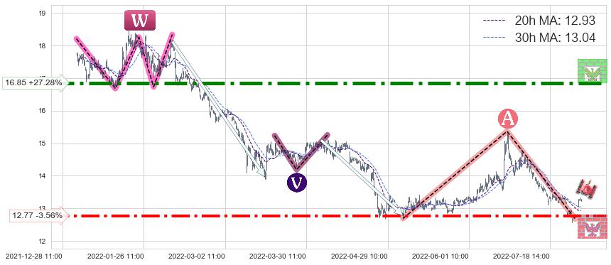 ♞ 20小时均线:12.93,30小时均线:13.04→ 快线<慢线