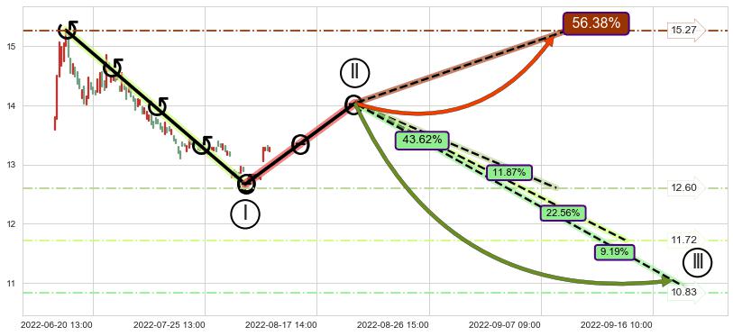➣ 循环浪继续向下【平均值】位置(09-14:12, 11.72),匹配聚类样本比例51.72%, 可能性概率22.56%