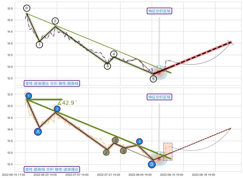 从2022-06-15 13:00至2022-08-11 13:00,共包含89个小时,阶段股价下跌-13.87%,阶段股价变动位移路程比: 1 : 4,下跌趋势角度: 42.9