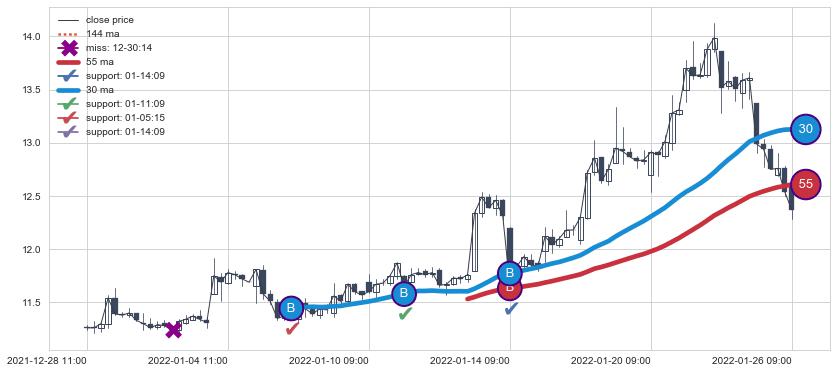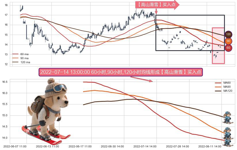 ⚀ 2022-06-16 11:00:00小时-2022-08-12 14:00:00小时显现 60小时-90小时-120小时均线 【高山滑雪】买入点 看多信号,后市看涨,买入