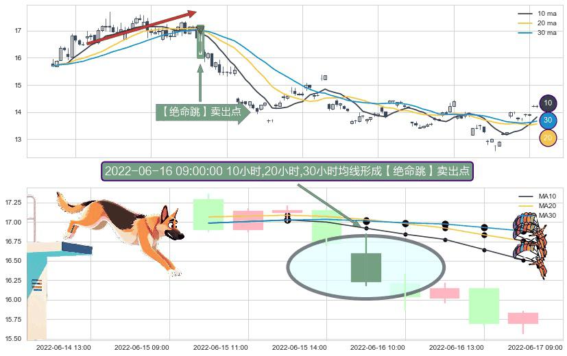 ⚀ 2022-06-16 09:00:00小时显现 10小时-20小时-30小时均线 【绝命跳】卖出点 看空信号,后市看跌,卖出