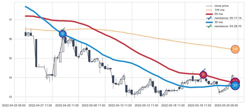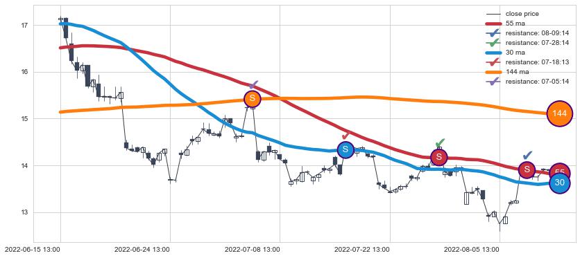 ⚀ 2022-06-15 14:00:00小时显现 10小时-20小时-30小时均线 【断头铡刀】卖出点 看空信号,后市看跌,卖出
