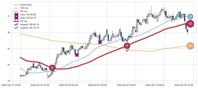 ⚂ 2022-06-15 14:00:00小时突然冒出一根大阴线,一下子下穿三条均线且收盘价收在各条均线之下