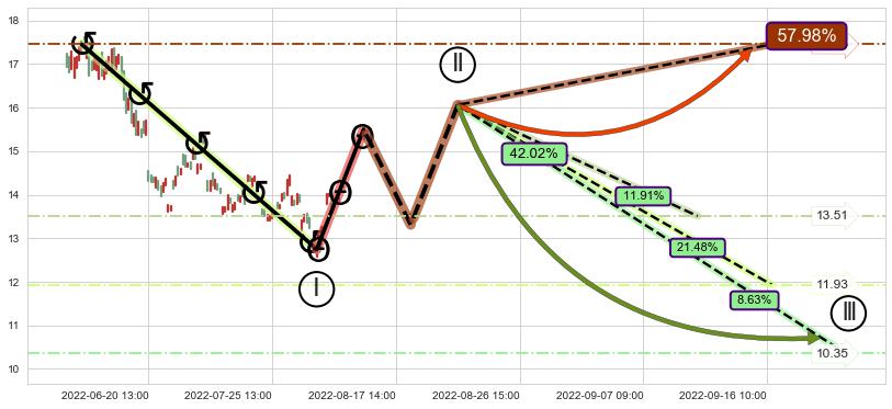 ♘ 阻力价格位16.02,可信任强度76.30%,距离最后交易2022-08-12 14:00形成的收盘价格14.20相差 +12.81%