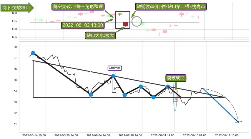 ➢ 2022-08-02 13:00形成:向下跳空【突破】缺口