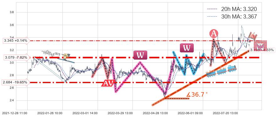 ♞ 20小时均线:3.320,30小时均线:3.367→ 快线<慢线
