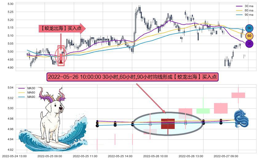 ⚀ 2022-05-26 10:00:00小时显现 30小时-60小时-90小时均线 【蛟龙出海】买入点 看多信号,后市看涨,买入