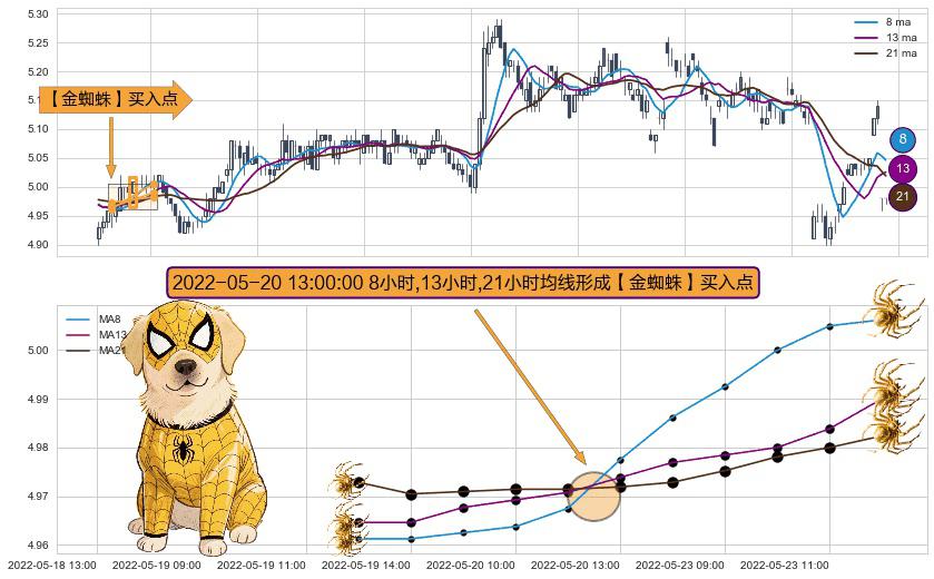 ⚀ 2022-05-20 13:00:00小时显现 8小时-13小时-21小时均线 【金蜘蛛】买入点 看多信号,后市看涨,买入