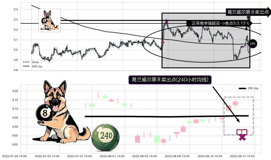 ⚀ 2022-08-12 13:00:00-小时显现 葛兰威尔均线 240小时均线 第⑧卖出点 下降趋势的中继信号,后市看跌,卖出信号