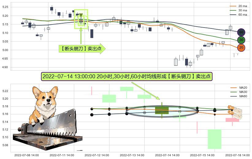 ⚀ 2022-07-14 13:00:00小时显现 20小时-30小时-60小时均线 【断头铡刀】卖出点 看空信号,后市看跌,卖出
