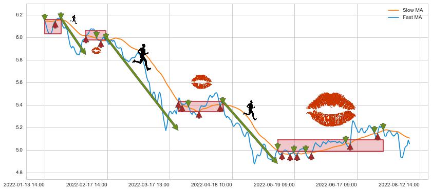 05-11 14:00至07-14 14:00 慢线与快线多次接触,存在上下穿越,有缠绕