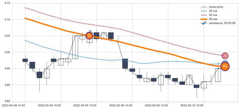 ⚃ 2022-05-26 10:00:00小时开盘价格在三条均线下收大阳线,收盘全突破均线,收盘股价上涨0.40%