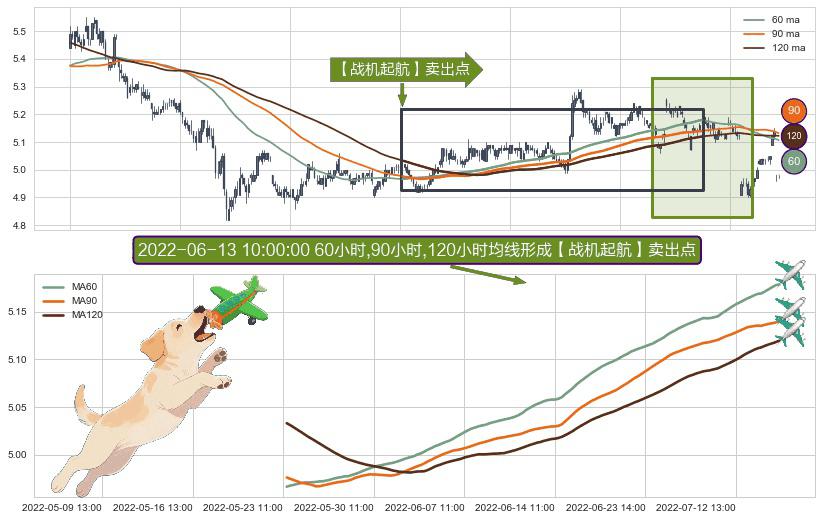 ⚀ 2022-05-23 13:00:00小时-2022-07-20 13:00:00小时显现 60小时-90小时-120小时均线 【战机起航】卖出点 看空信号,后市看跌,卖出