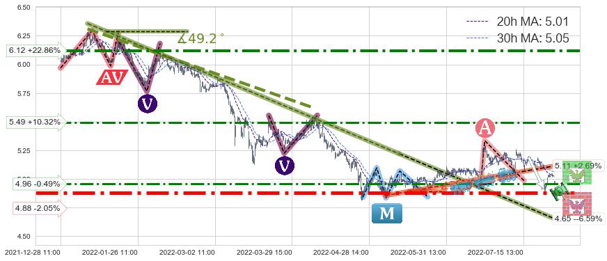♞ 20小时均线:5.01,30小时均线:5.05→ 快线<慢线